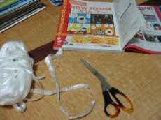 求人誌を十文字に縛ります。結び目は写真のようにカドの部分で結ぶと、しっかりと、きつく縛ることが出来ます。